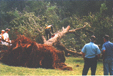 Cleaning up After Fran - Page 1 Davidson C.C. Correctional Officer Johnny Thomason with inmates working on tree felled by Hurricane Fran in New Hope Fire District outside of Hillsborough.
